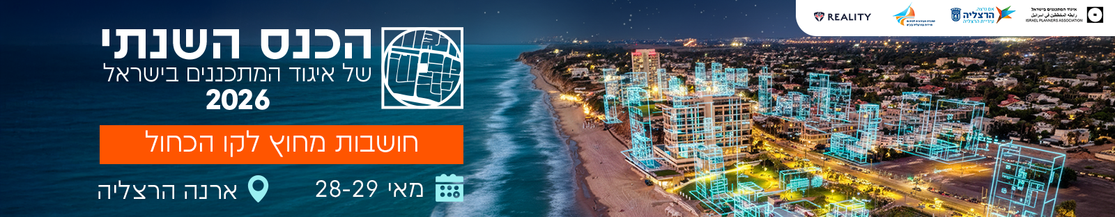 הכנס השנתי של איגוד המתכננים בישראל לשנת 2026, בשיתוף עיריית הרצליה, קבוצת ריאליטי והחברה העירונית לפיתוח תיירות בהרצליה.